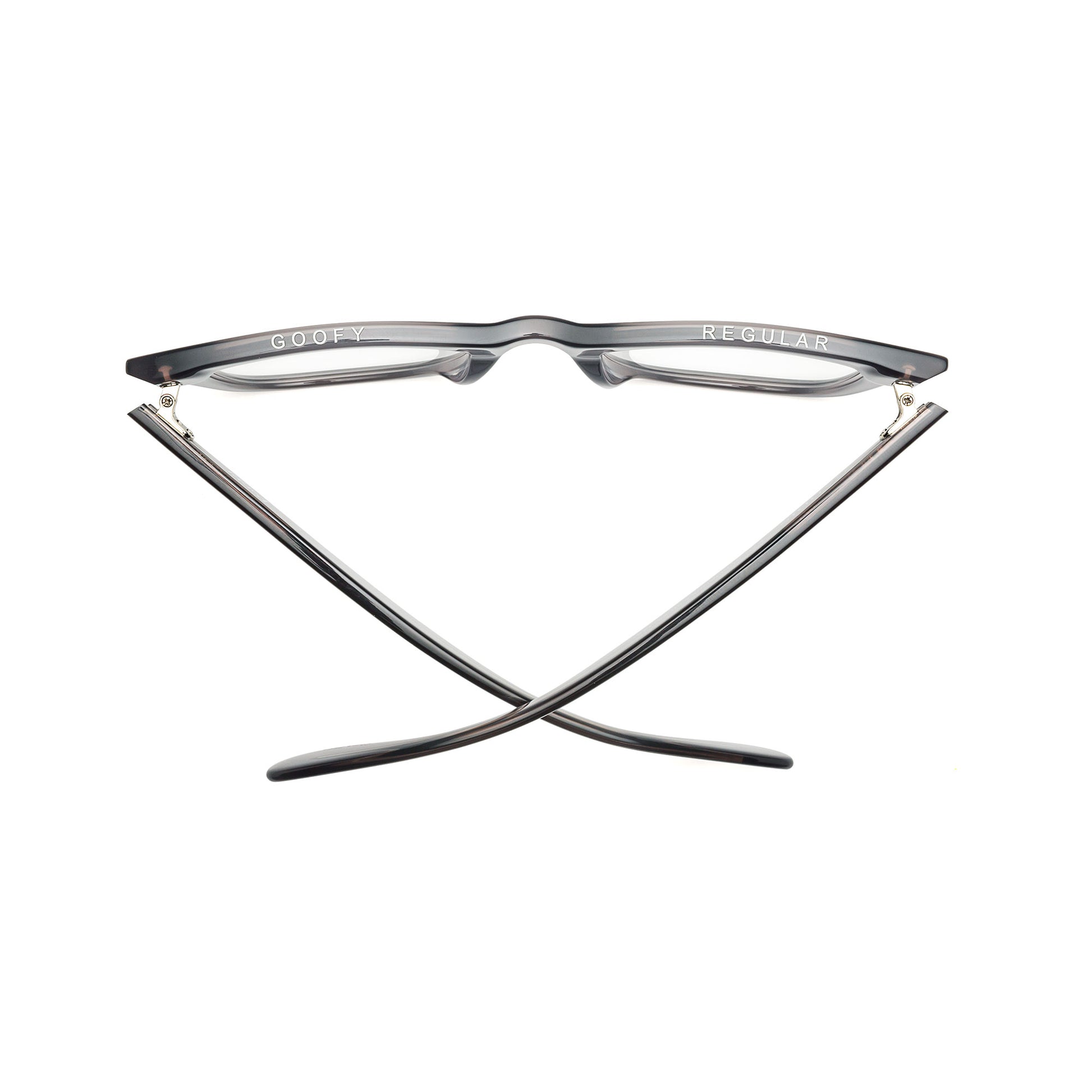 It's time to take it backstage. It's dark backstage. Please give a warm welcome to Porgy Backstage. In mixtape black. With full, clear magnification lenses. See what you're eating in the green room. As you hear the crowd behind the velvet curtains. Two dot detail. Top of frames engraved with "Goofy" and "Regular." Crafted to crush it. The indoor venue to the outdoor festival that is Porgy Sun Readers.